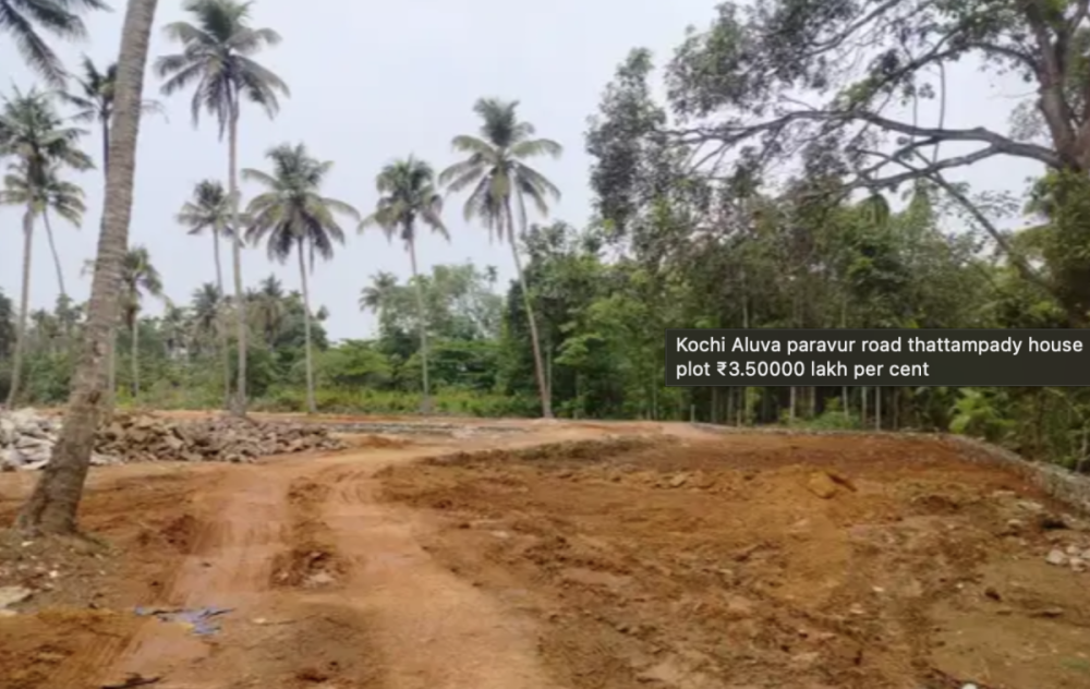 Total one aker land 5 cent 10 cent plot available ₹3.5 per cent plot 5 mtr road Easy access Aluva paravur road Aluva metro station 6 Cochin international airport 13 km Loan facility available