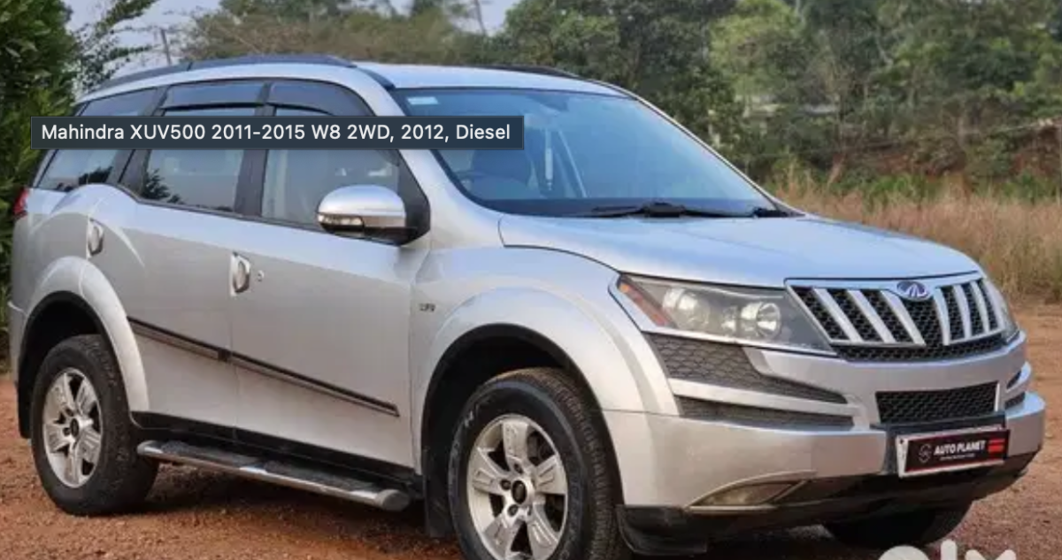 2012 MAHINDRA XUV 500 W8 2.2 L Diesel Manual Second Owner,114000 Km Good Condition, Accident free Contact More Details ADDITIONAL VEHICLE INFORMATION: ABS: Yes Accidental: No Adjustable External Mirror: Power Adjustable Steering: Yes Air Conditioning: Automatic Climate Control Number of Airbags: 8 airbags Alloy Wheels: Yes Anti Theft Device: Yes Aux Compatibility: Yes Bluetooth: Yes Vehicle Certified: Yes Color: Silver Cruise Control: Yes Engine Capacity/Displacement (in Cc): 2200 Insurance Type: Comprehensive Lock System: Remote Controlled Central Make Month: June Navigation System: Yes Parking Sensors: Yes Power steering: Yes Power Windows: Front & rear AM/FM Radio: Yes Registration Place: KL Exchange: Yes Finance: Yes Service History: Available USB Compatibility: Yes Posted by Auto Planet Member since Feb 2017 331 Items listed Chat with seller ** *** **** Show number AD ID 1834199014 Report this ad Used Mahindra Cars in undefined