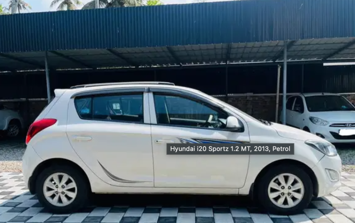 *RJM CARS TRIVANDRUM* Vehicle : *I20* Option :*SPORTZ* Model : *2013* ️TRANSM: *MANUAL* Fuel : *PETROL* Colour : *WHITE* KM : *30000* PRICE : *365000* Ownership : *2* *EXCELLENT CONDITION* *INSURANCE AVAILABLE NO ACCIDENT HISTORY* ADDITIONAL VEHICLE INFORMATION: ABS: Yes Accidental: No Adjustable Steering: Yes Air Conditioning: With Heater Number of Airbags: 1 airbag Alloy Wheels: Yes Aux Compatibility: Yes Battery Condition: New Bluetooth: Yes Color: White Insurance Type: Comprehensive Lock System: Central Make Month: March Parking Sensors: Yes Power steering: Yes AM/FM Radio: Yes Registration Place: KL Exchange: Yes Finance: Yes Service History: Available Tyre Condition: New USB Compatibility: Yes