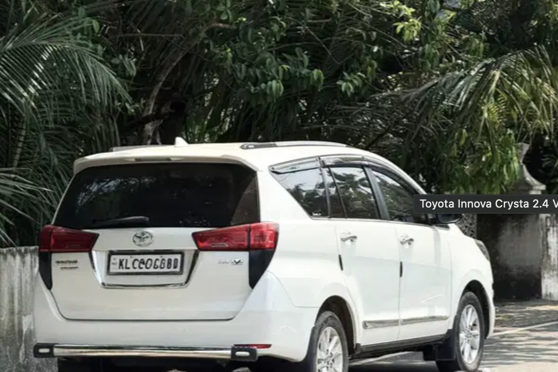 ** Innova Crysta V option* 2019 model Second owner 2.4 V Diesel 60000km 60000km service done showroom service History available. No accident or replacement Or flood Service book and spare key Extra fittings ADDITIONAL VEHICLE INFORMATION: Color: White Insurance Type: Comprehensive Make Month: May Registration Place: KL
