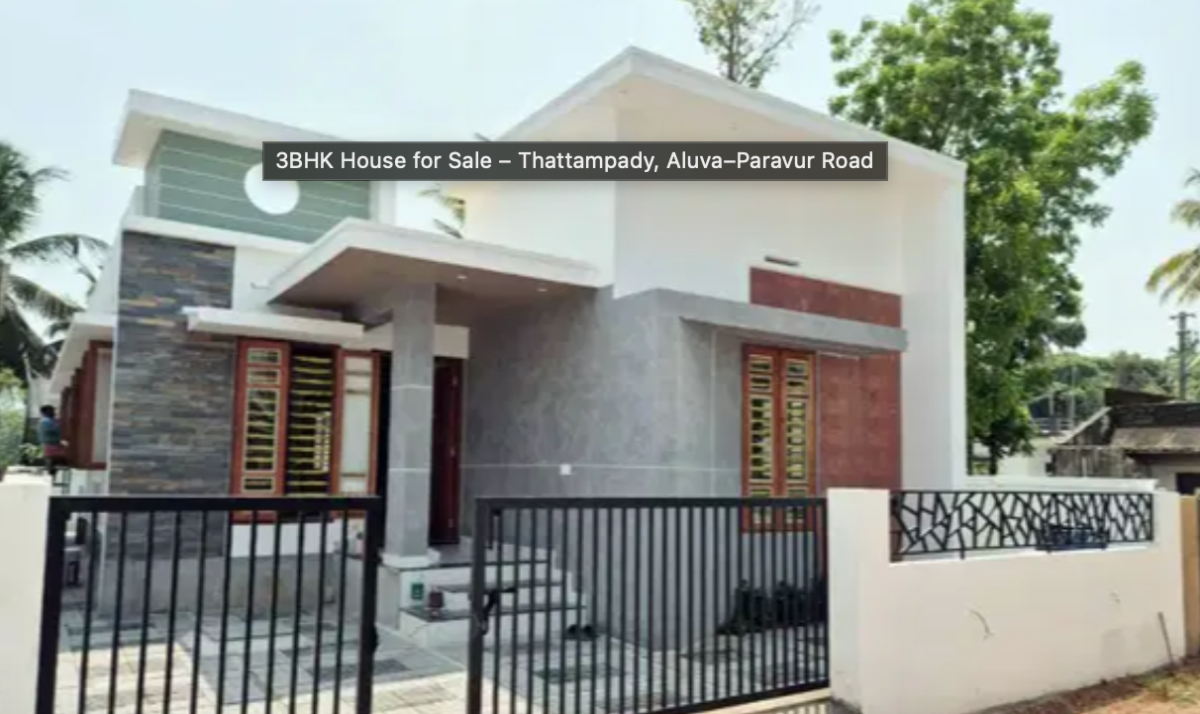 3BHK House for Sale – Thattampady, Aluva–Paravur Road Affordable Home • Good Location • Excellent Connectivity New 3BHK independent house located in Thattampady, very close to the Aluva–Paravur road Property Details • Land Area: 3.500 Cents • Built-up Area: 760 SQFT • Bedrooms: 3 Bedrooms • House Type: Independent House • Good residential surroundings Location Highlights • Thattampady – Near Aluva–Paravur Road • Easy access to Aluva, Paravur & nearby towns • Close to schools, shops & daily amenities * Asking Price: ₹37 Lakhs (Negotiable) * For Site Visit & More : 9633 O7O .. 9O7